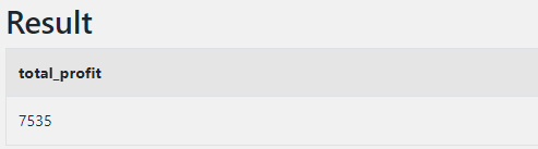 GROUP BY 없이 집계함수만 사용한 경우에도 이처럼 컬럼의 값을 모두 더하면서 profit에 저장되어있던 모든 값을 압축하여 하나의 row만이 조회되는 것을 확인할 수 있다.
