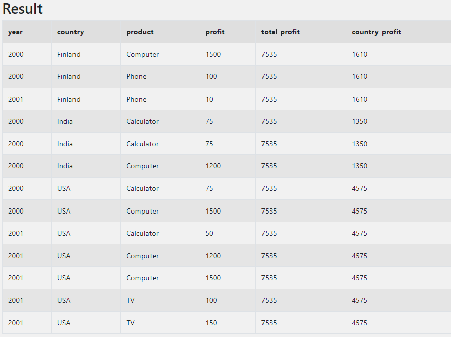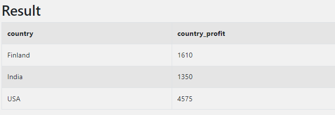 SUM(profit) OVER(PARTITION BY country) AS country_profit