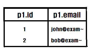 INNER JOIN을 수행할 경우 다음과 같이 테이블이 조인되는데 p2 id 보다 p1 id 값이 큰 경우로 4번째 row 값이 걸리게 된다.